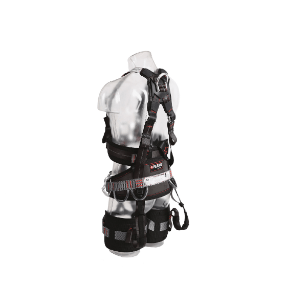 - Optimal fit and work positioning is achieved via adjustable shoulder, upper back, lower back, leg and waist straps